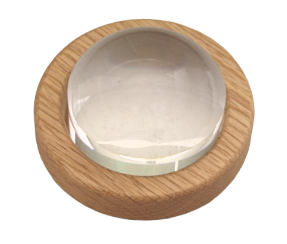 We offer round wooden bases for the 64mm and 89mm domes. The wooden base can be engraved and personalized.